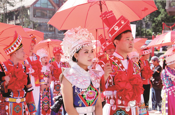 现场49对新人在热闹、喜庆、浪漫的氛围中,不仅感受到了浓厚的苗家婚俗文化,给自己留下了一段难忘的特别记忆,而且也满心喜悦地憧憬着未来的幸福美好。同时,大批新人亲友团也作为观礼嘉宾在摩围山避暑纳凉、养生休闲,感受别样风情。