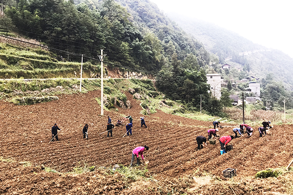 黄克银家是社区里的建档立卡贫困户,丈夫在外打工,自己则在家照顾家庭,平时在家种点红薯、土豆等农作物,还养了几头猪。通过外出务工和在家就近就业的方式,她家成功脱贫摘帽,日子越过越红火。“每天工资有80元。一个月下来工资最少都有1000多元,在家门口务工安逸得很。”讲到这里,黄克银显得很是兴奋,手上的速度又更快了。