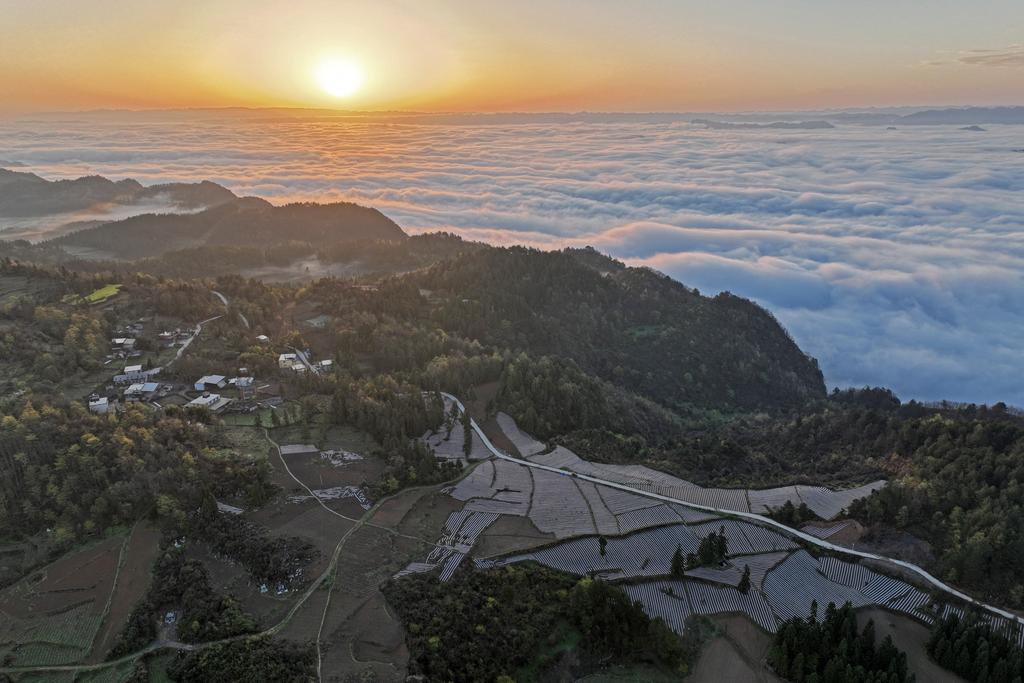 4月1日,在桑柘镇易家村,朝阳映衬下的田园、村庄美如画卷。近段时间,彭水各地村民抢抓农时,抓好春耕春播,彭水大地呈现勃勃生机。