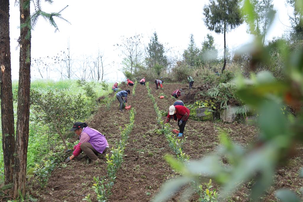 近日,在绍庆街道天台村的油茶基地里,村民们正抢抓农时开展油茶栽种作业,新栽下的油茶苗整齐排列,焕发出勃勃生机。天台村依托当地山地资源优势,大力发展油茶产业,既盘活了闲置土地、绿化荒山,又为村民提供了家门口的就业岗位,带动农户增收致富。