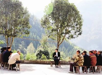 在小河社区5组钱文国家的院坝,群众围坐一圈,任春正用通俗易懂的语言给大家讲解着2025年医保缴费标准、报销比例、参保流程、异地就医结算方式和流程等大家关注关心的热点问题。
