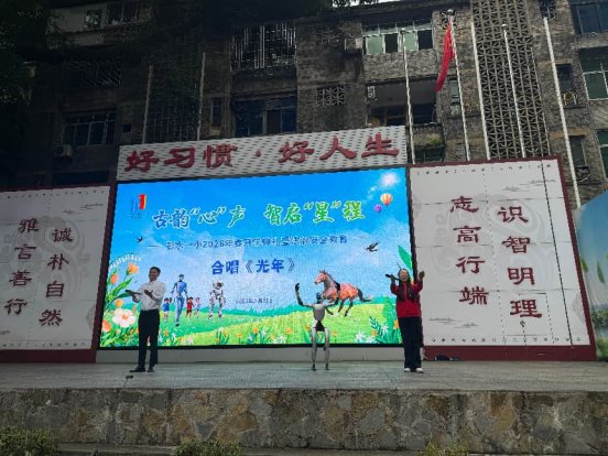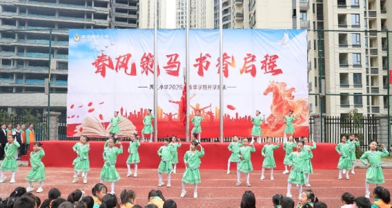 以马为喻,寄寓成长。普子中学、彭水二中、摩围中学、桑柘中学、彭水三小等学校以“以梦为马,不负韶华”“策马扬鞭启新程”“骐骥跃新程·驰骋向未来”等为主题,借马年奔腾向上之意象,勉励学子如骏马般朝气蓬勃、锐意进取。彭水一小别出心裁,以“古韵‘心’声,智启‘星’程”为主题,机器人携街舞少年、武术小子同台献艺,古典诗词朗诵与科技感十足的《光年》歌声交织,奏响了一曲传统与创新交融的开学序曲。县幼儿园以“策马迎春绽童趣·沐氧自然育未来”为主题,立足“蒙以养正·德以润身”办园理念,深度践行“玩在自然,‘氧’育未来”的课程新理念。两江小学则将开学典礼延伸至爱国教育基地,通过“重走长征路”的沉浸式体验,开启“行走中的大思政课”,让红色基因在春风化雨中代代相传。