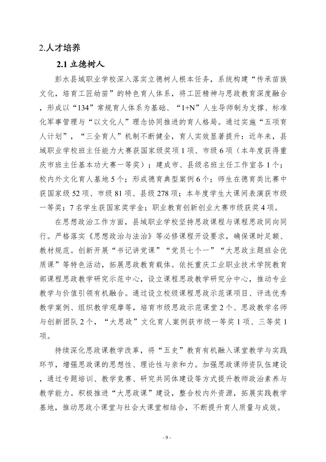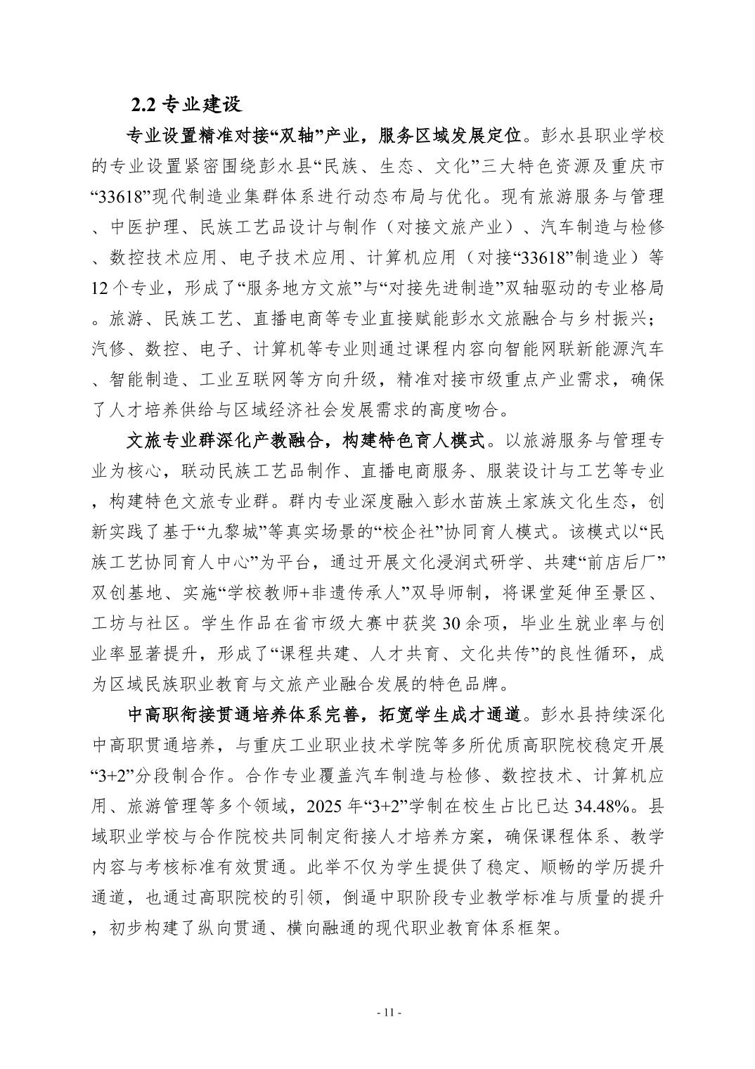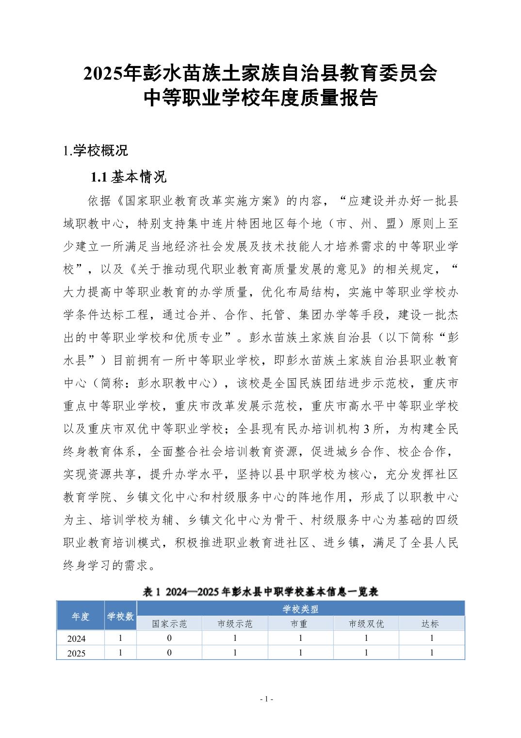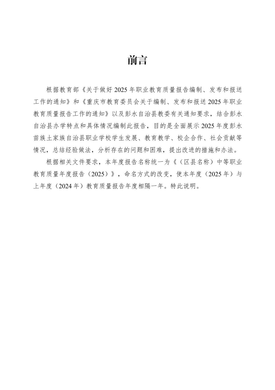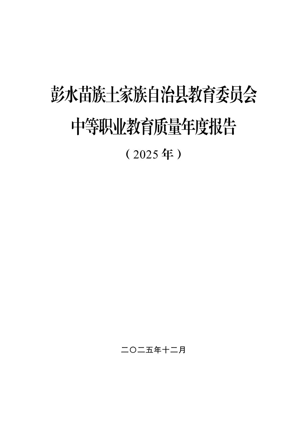彭水苗族土家族自治县教育委员会2025年中等职业教育质量年度报告