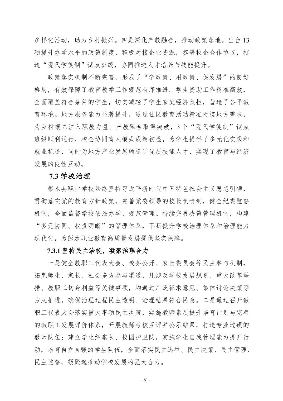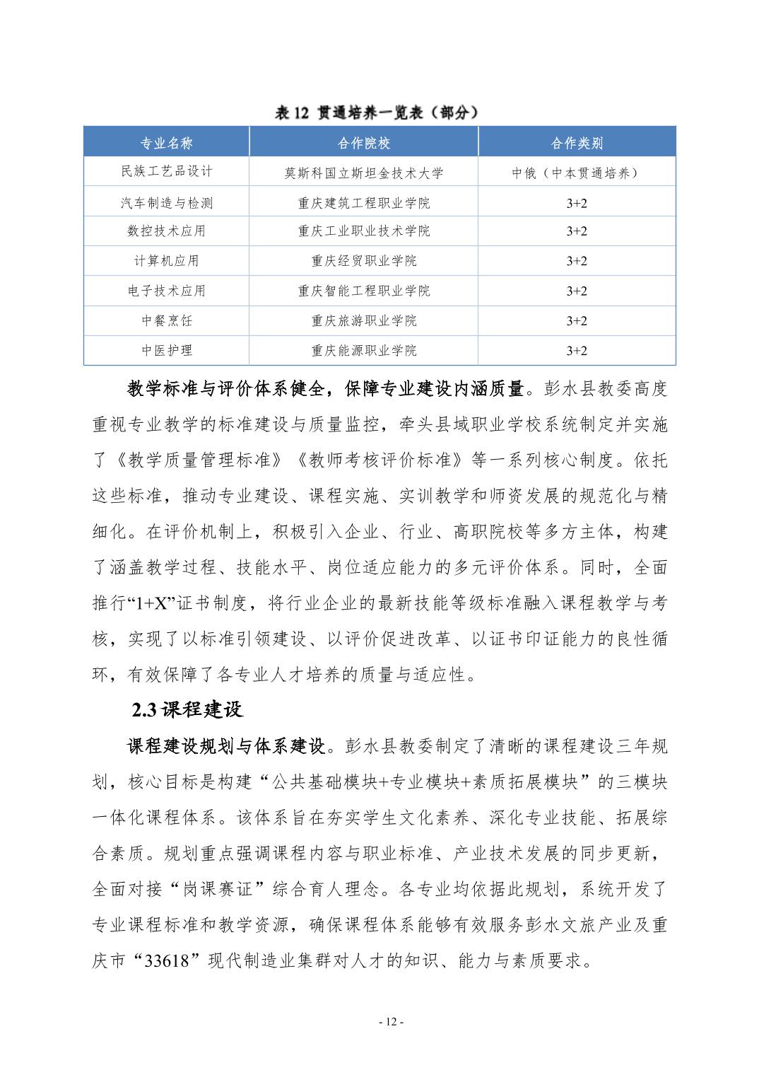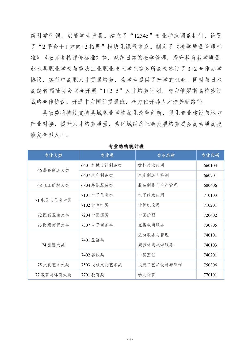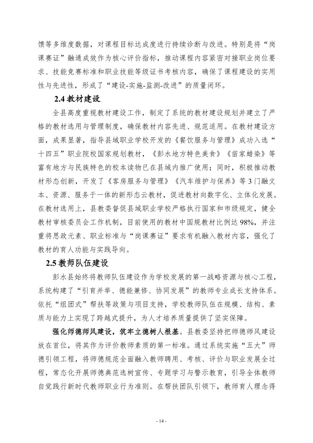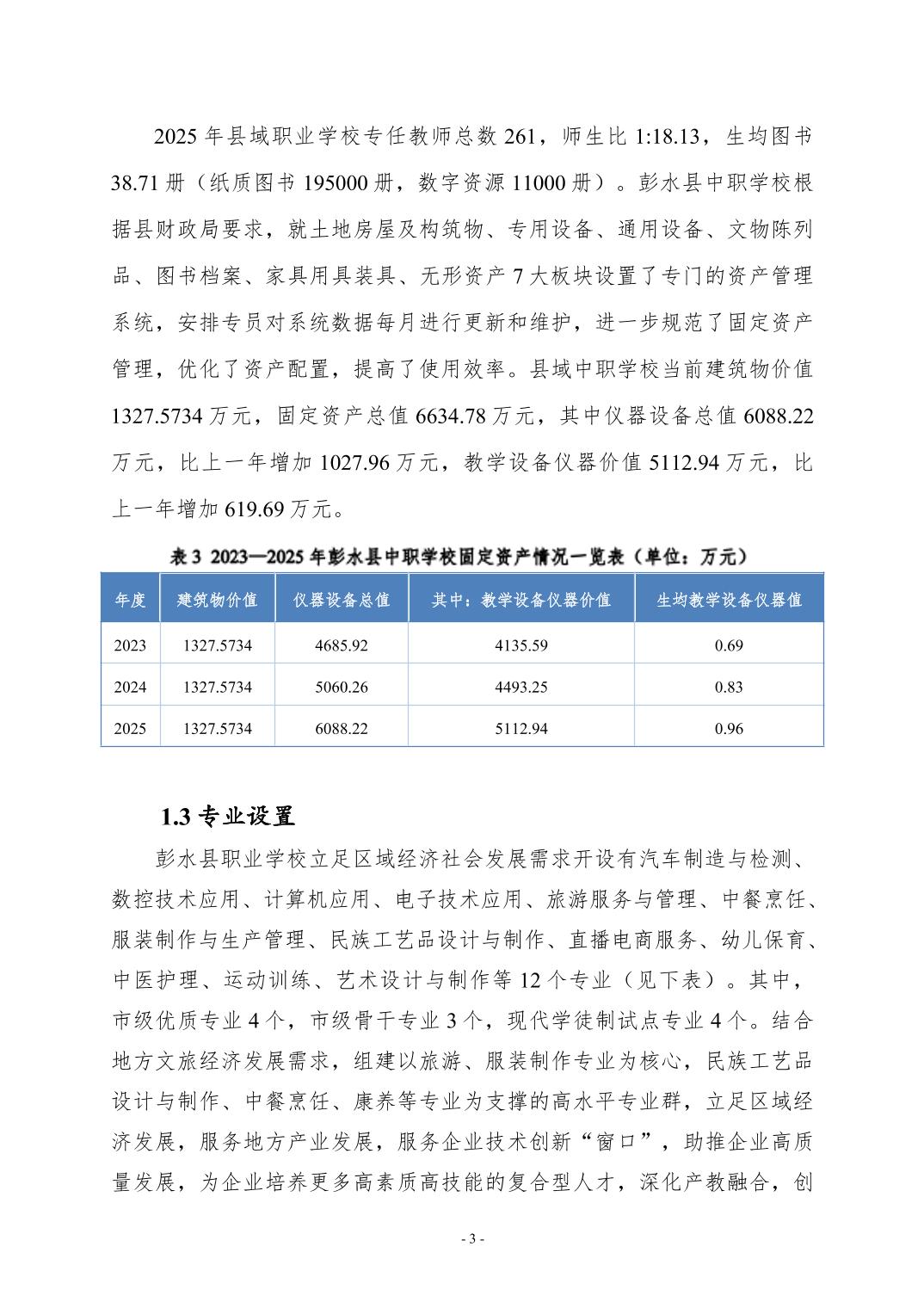 彭水苗族土家族自治县教育委员会2025年中等职业教育质量年度报告