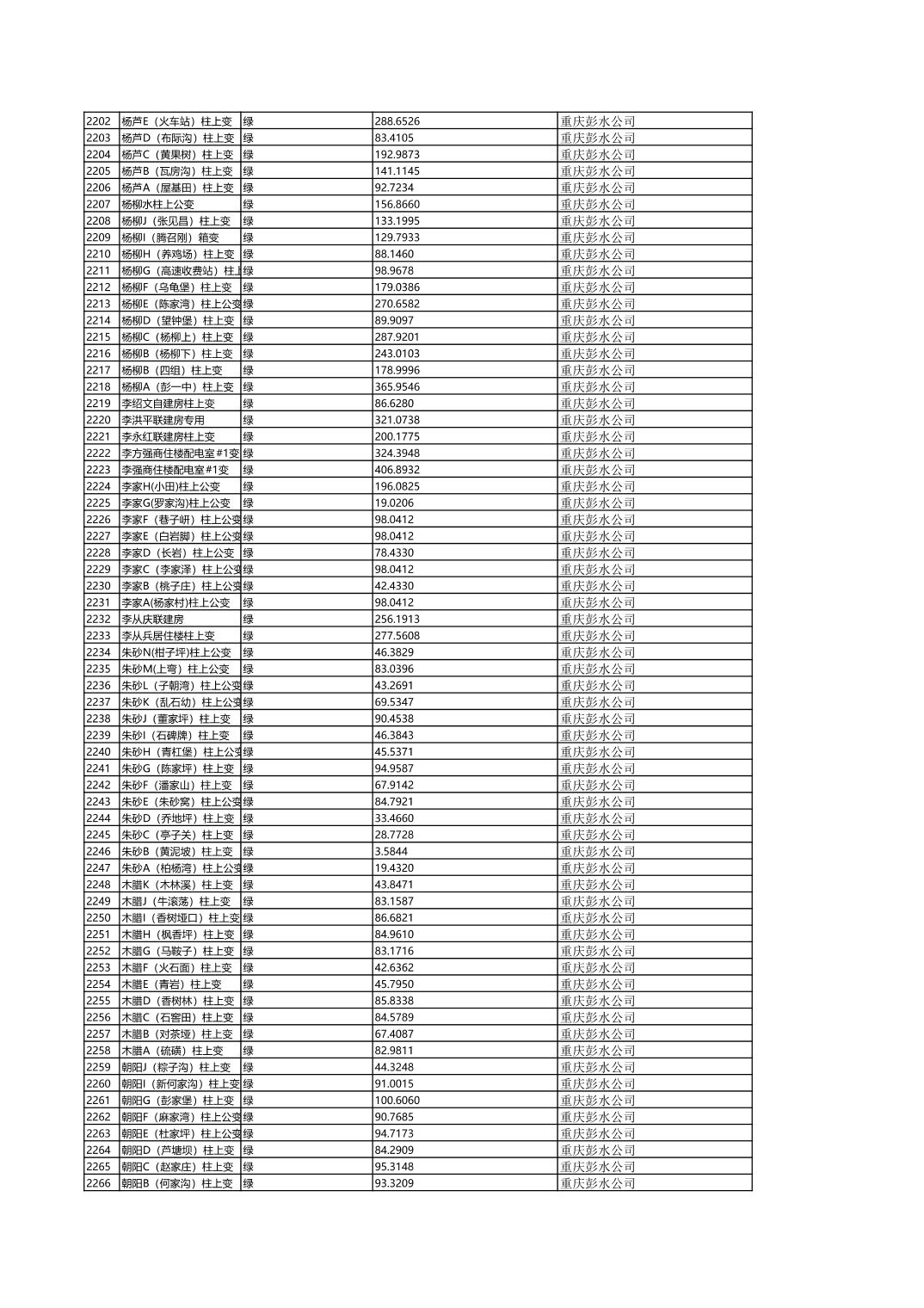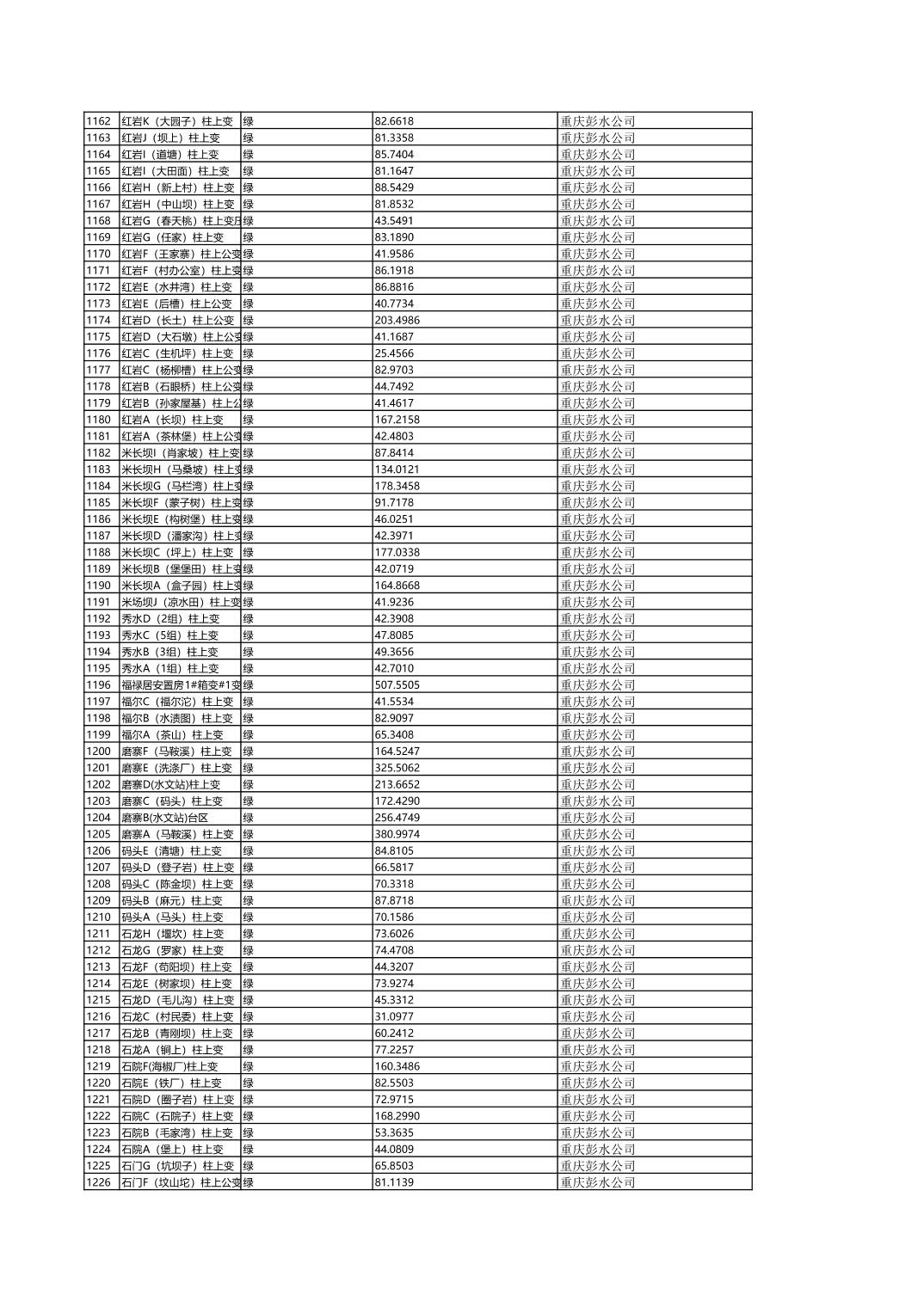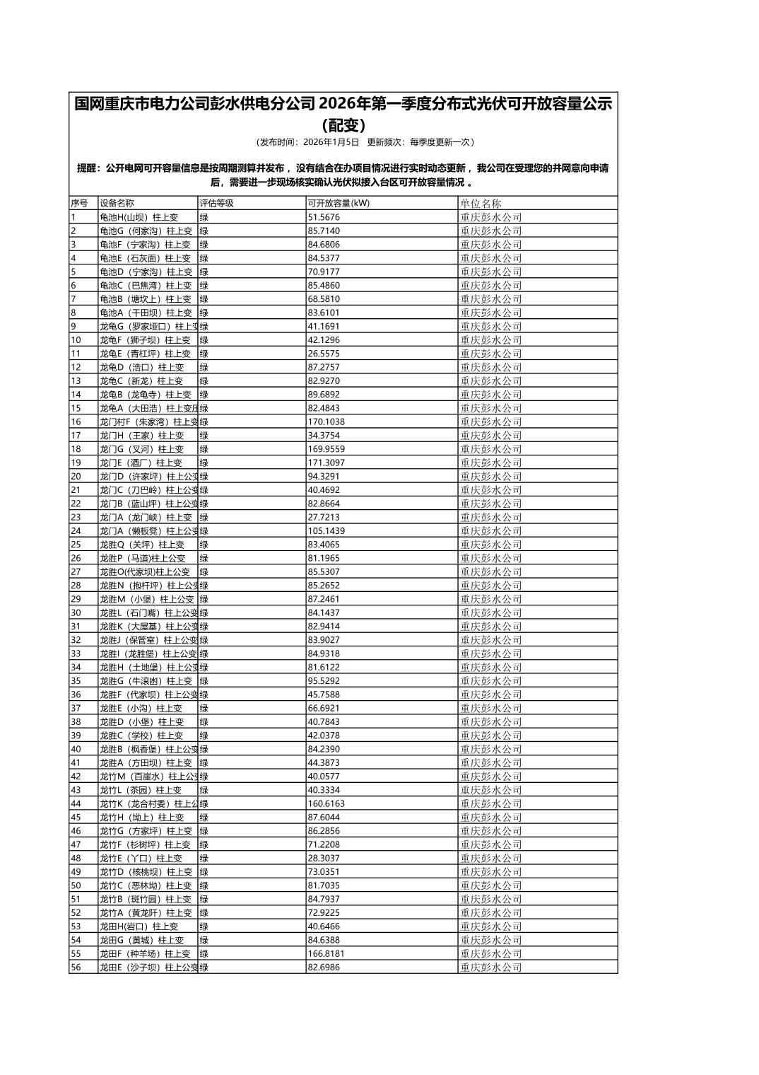 国网重庆市电力公司彭水供电分公司2026年第一季度分布式光伏可开放容量公示(配变)