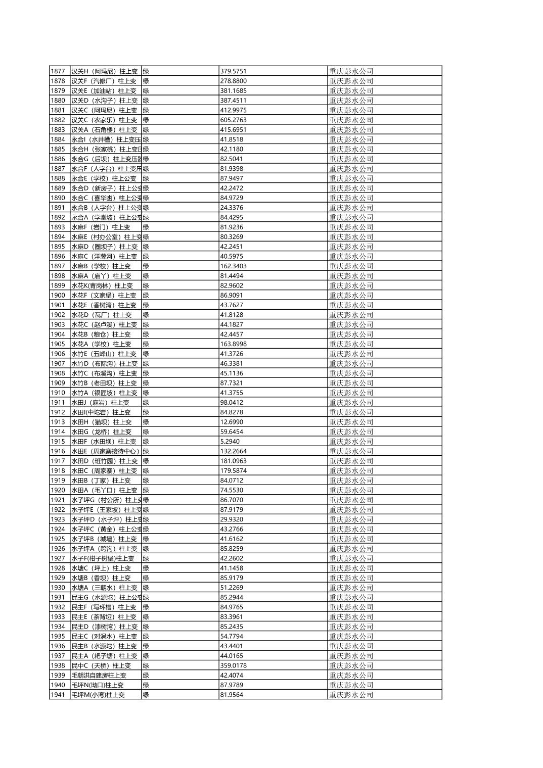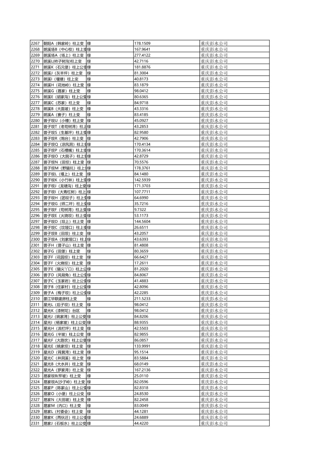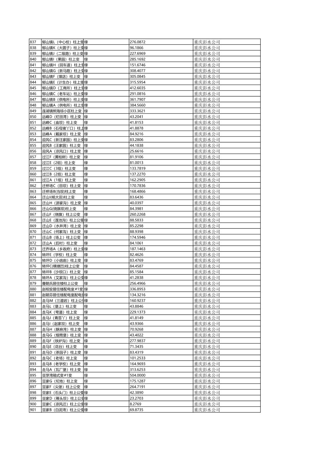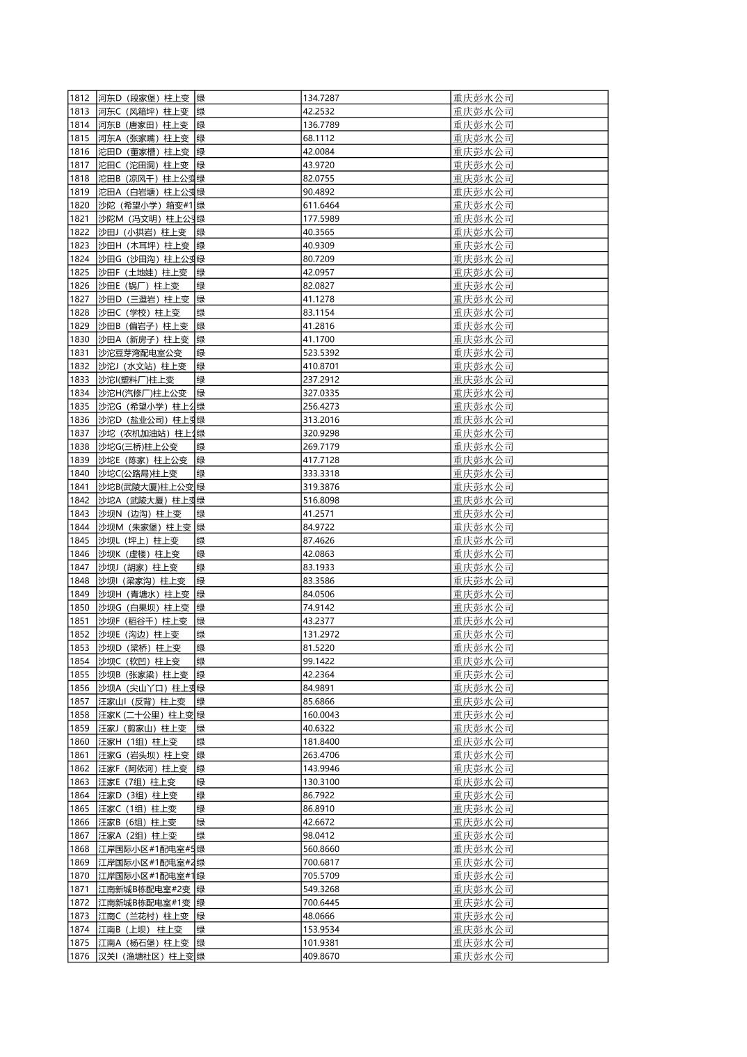 国网重庆市电力公司彭水供电分公司2026年第一季度分布式光伏可开放容量公示(配变)