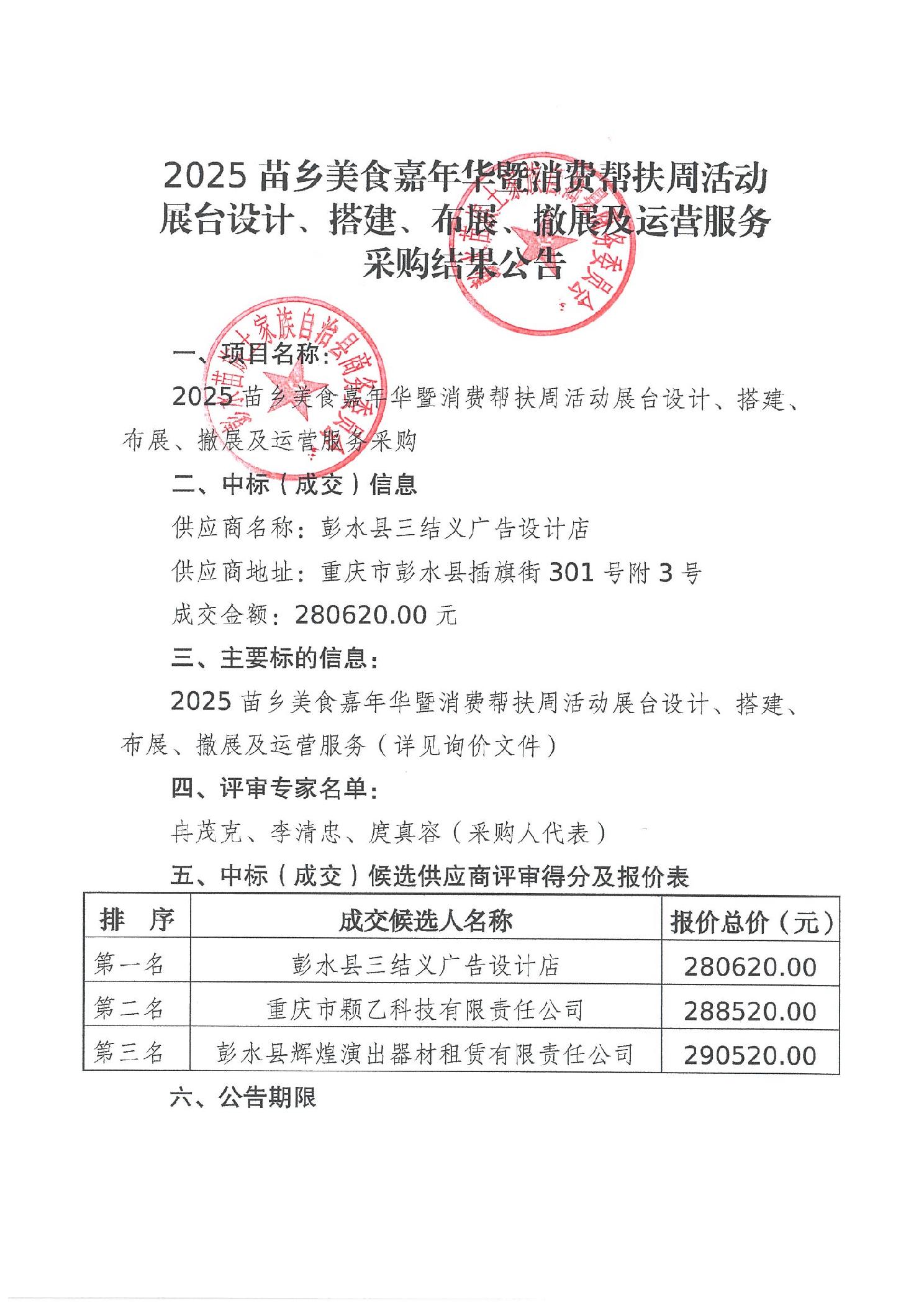 2025苗乡美食嘉年华暨消费帮扶周活动展台设计、搭建、布展及撤展及运营服务采购结果公告