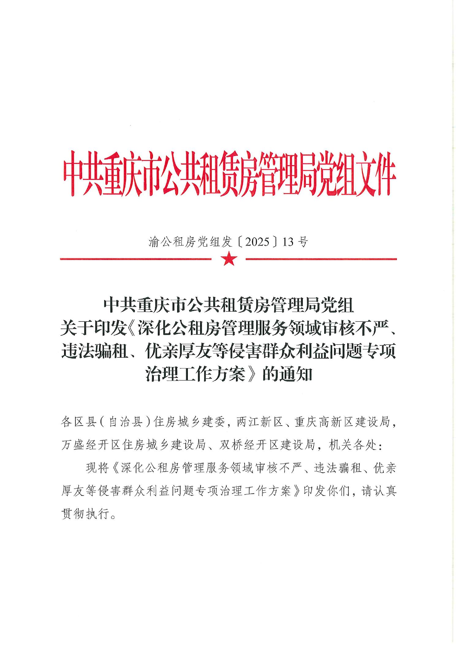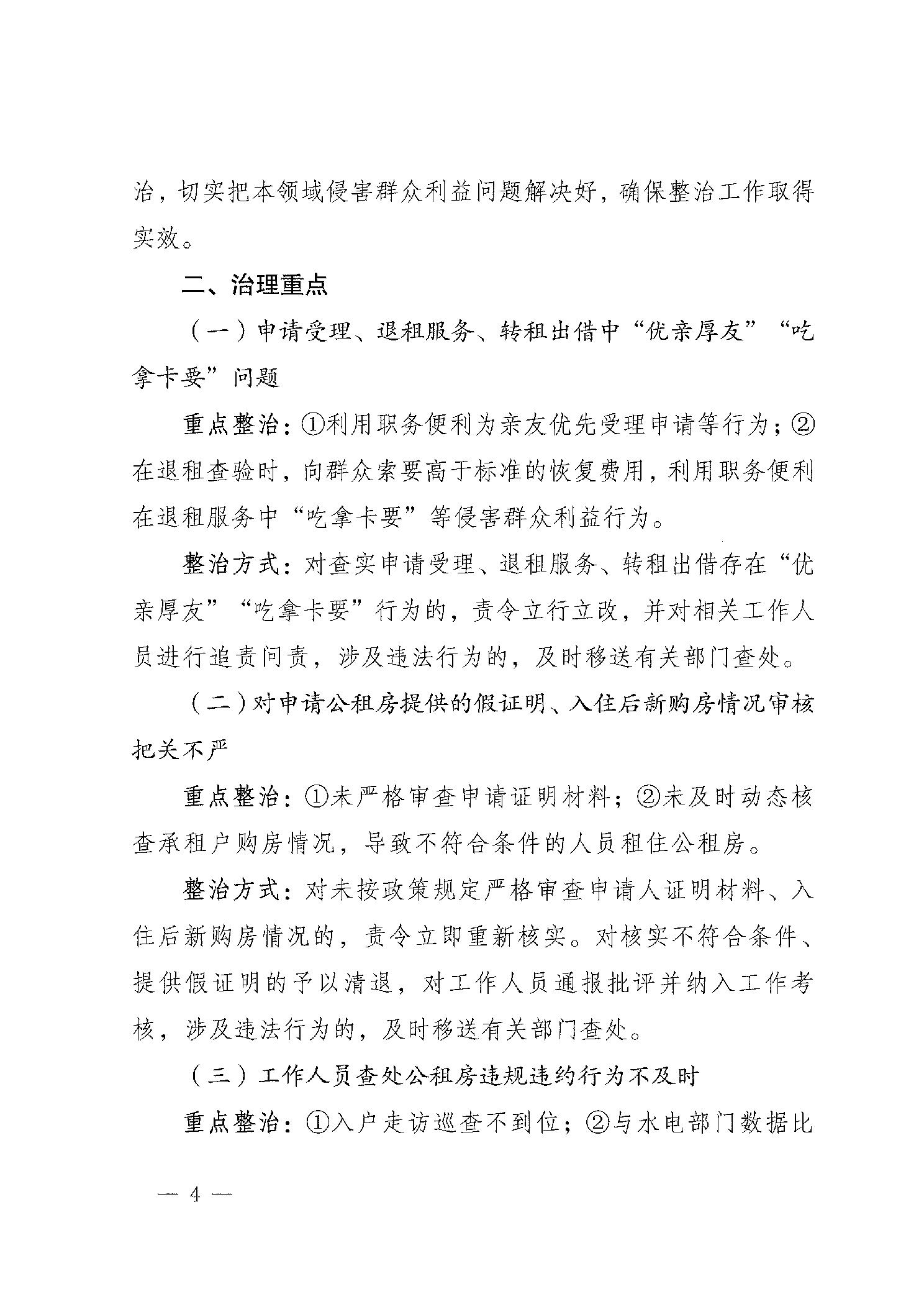 关于印发《深化公租房管理服务领域审核不严、违法骗租、优亲厚友等侵害群众利益问题专项治理的工作方案》的通知
