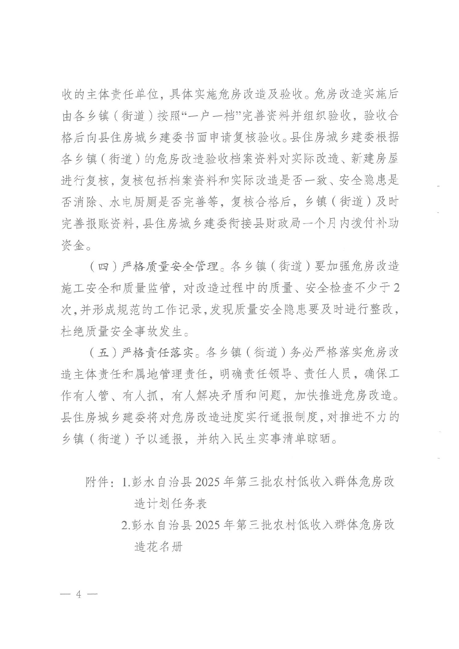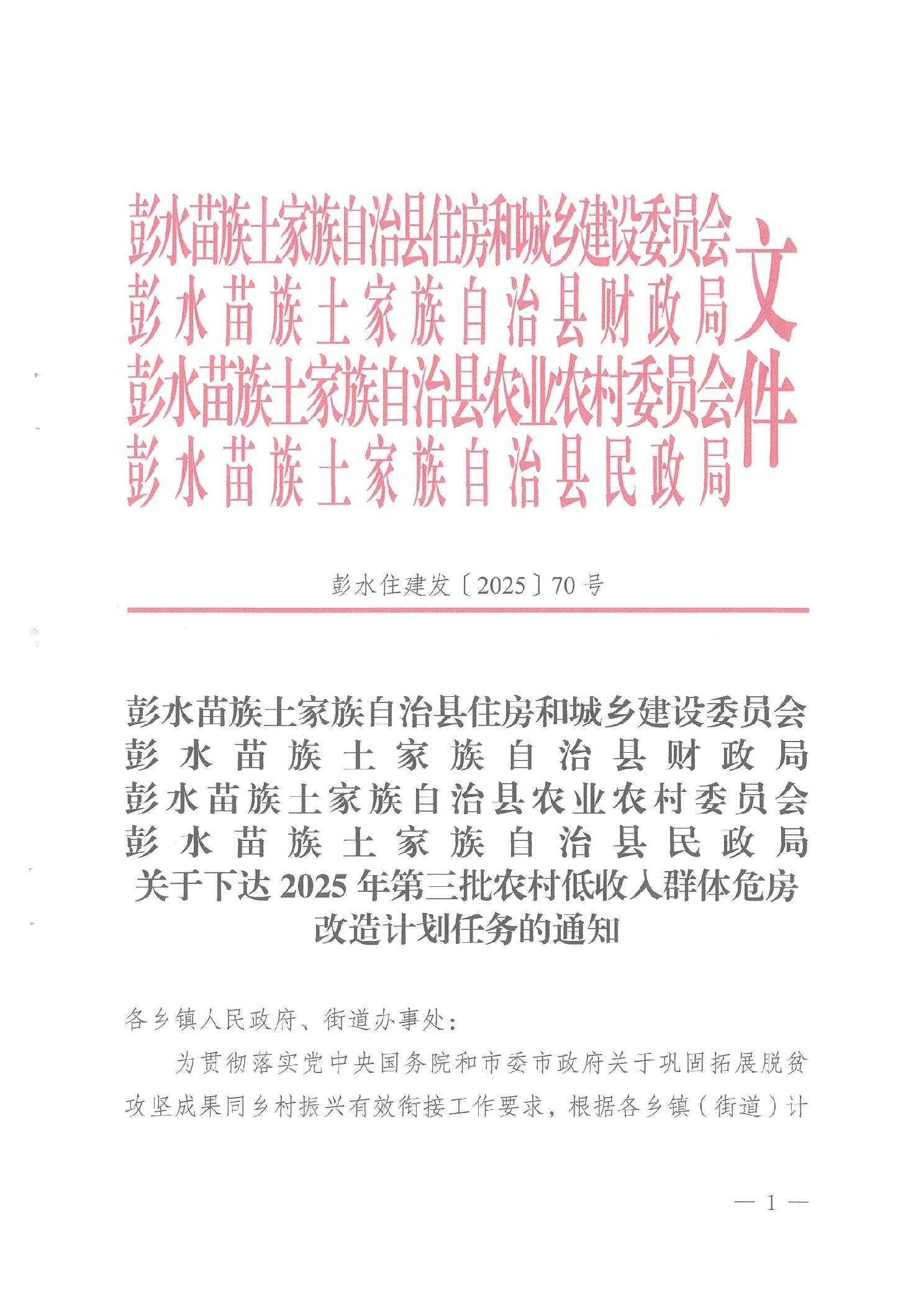 彭水自治县2025年第三批农村低收入群体危房改造计划花名册