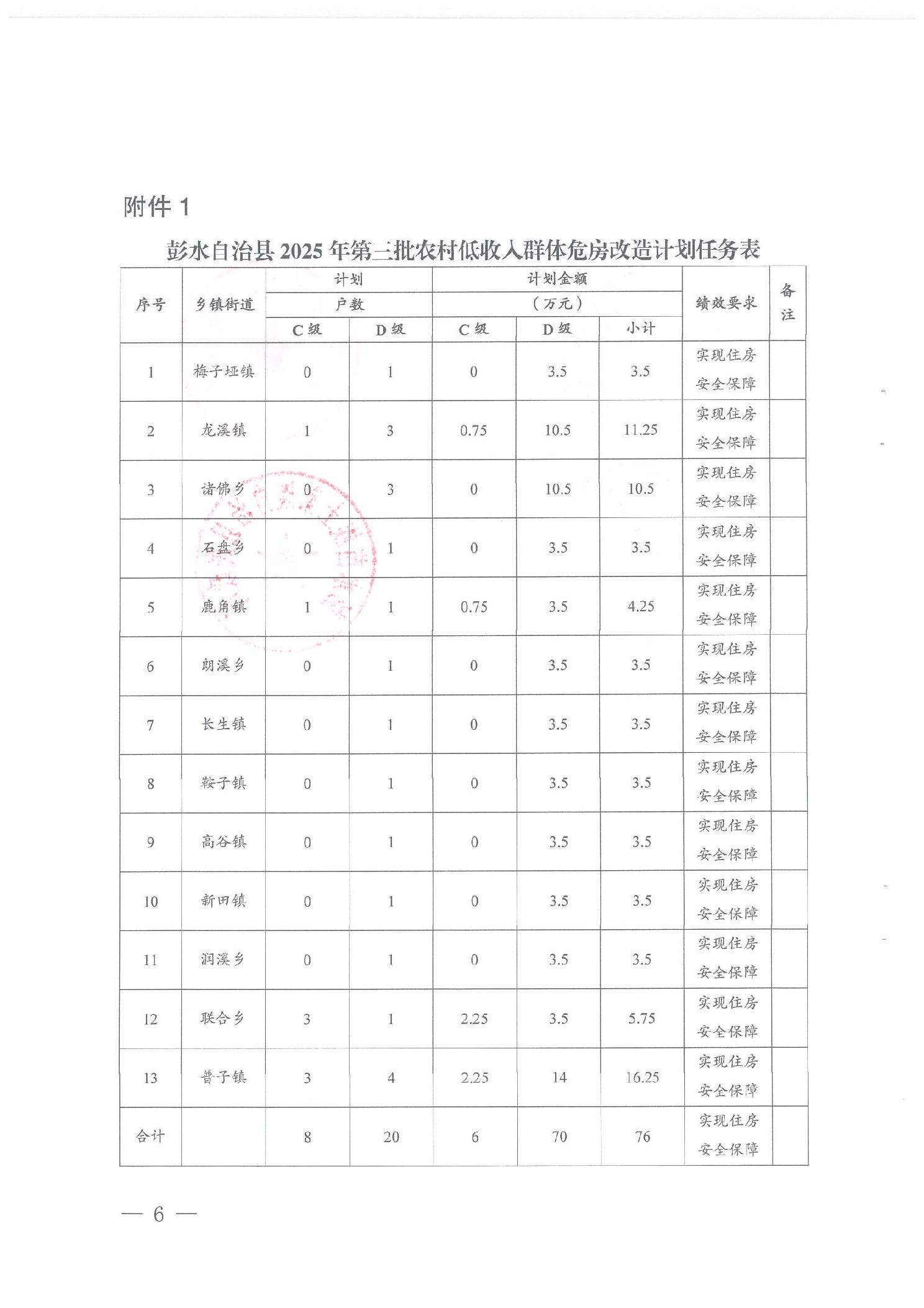 彭水自治县2025年第三批农村低收入群体危房改造计划花名册