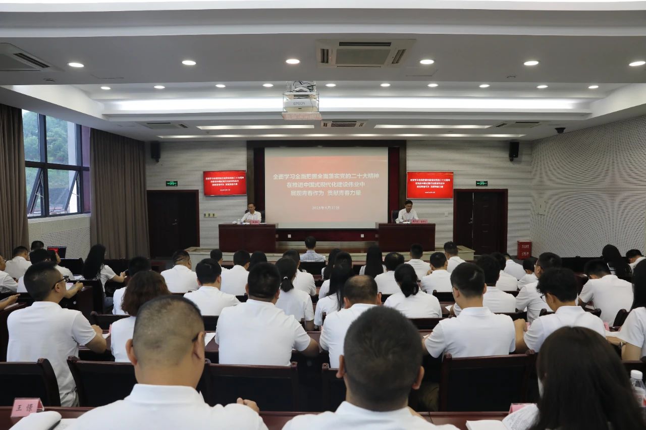 陈清松以《全面学习、全面把握、全面落实党的二十大精神在推进中国式现代化建设伟业中展现青春作为 贡献青春力量》为题,从凝聚思想共识,切实增强奋力谱写中国式现代化重庆篇章的责任感使命感;把握形势任务,为推动山区民族地区强县富民现代化贡献力量;牢记初心使命,努力成为可堪大用能担重任的栋梁之才三个方面,结合彭水实际,进行了深入浅出的阐释和讲解。