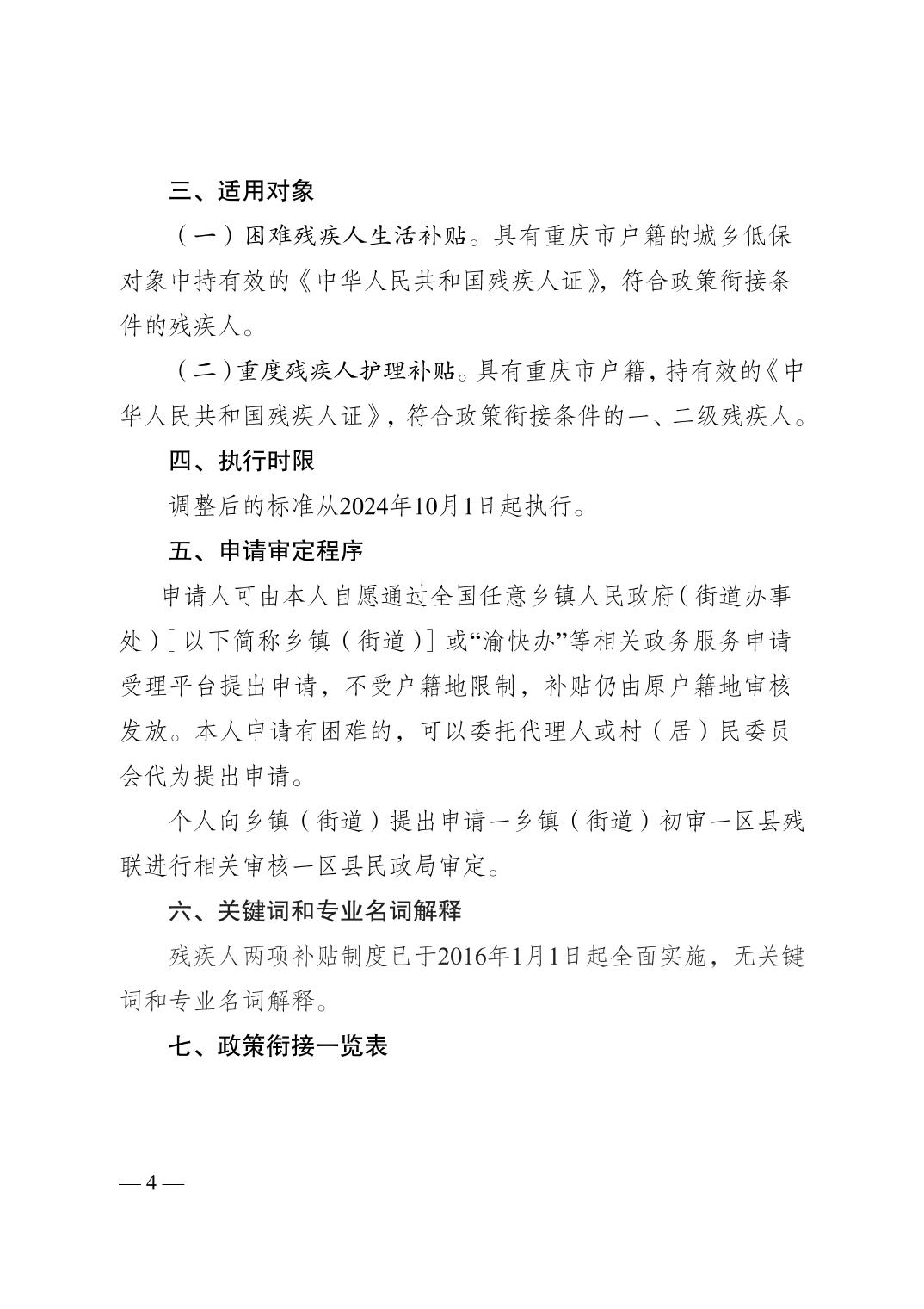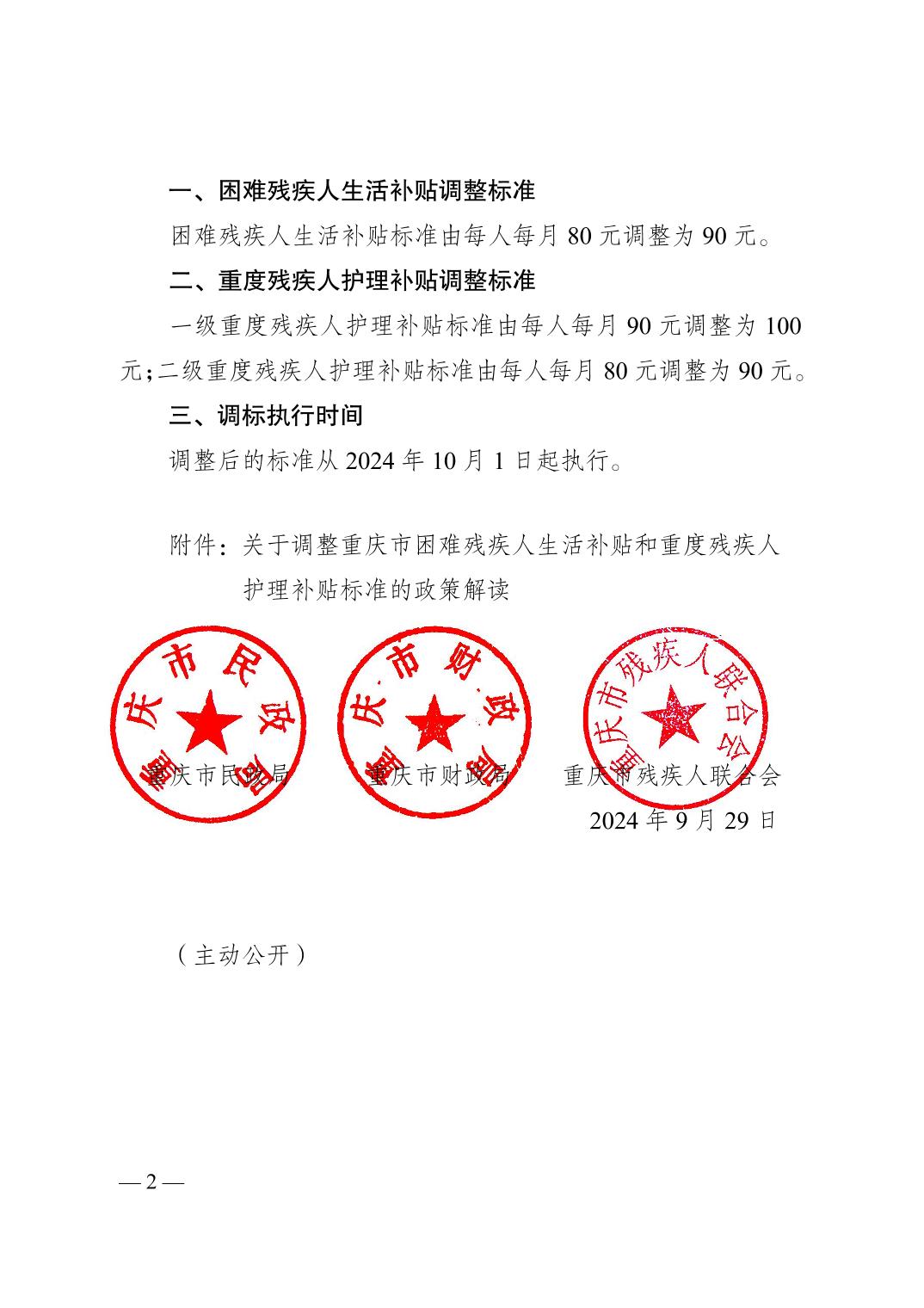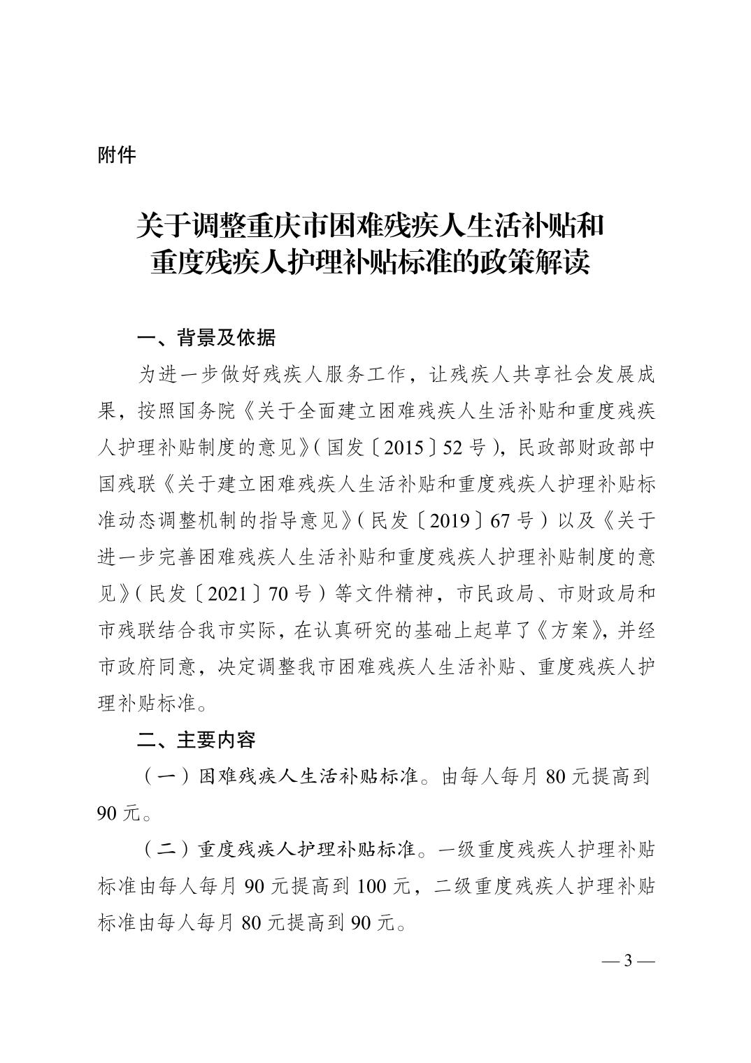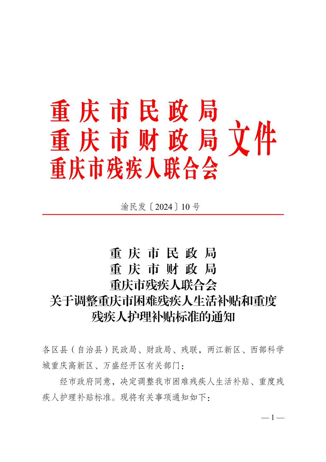 关于调整重庆市困难残疾人生活补贴和重度 残疾人护理补贴标准的通知