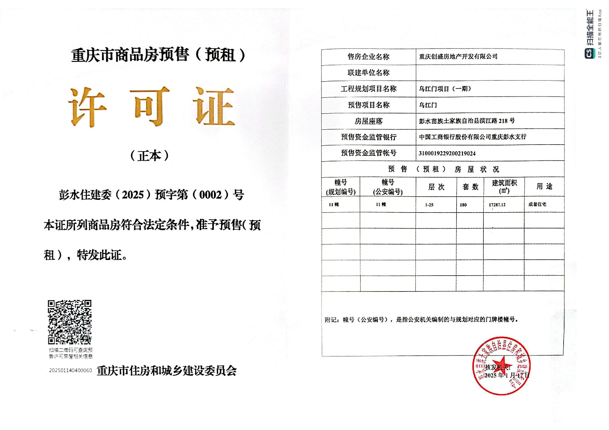 重庆市商品房预售(预租)许可证彭水住建委(2025)预字第(0002) 号